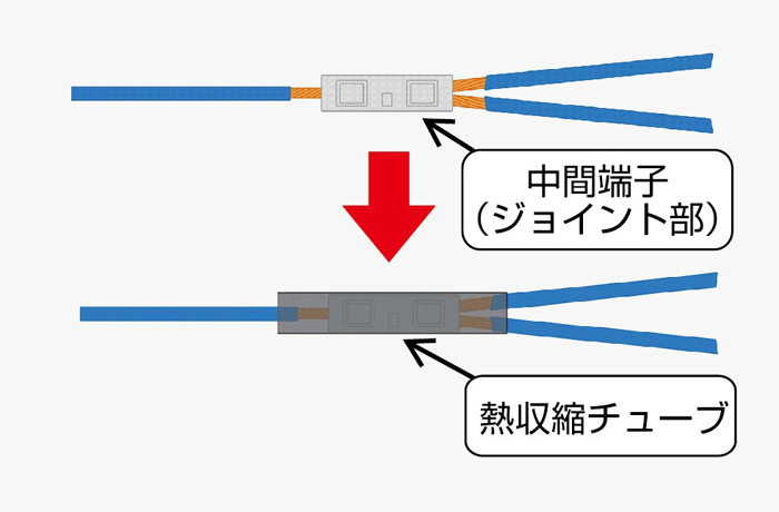 절연처리를 하기위해서 추가로 테이프를 말거나 수축포 처리를 한다.